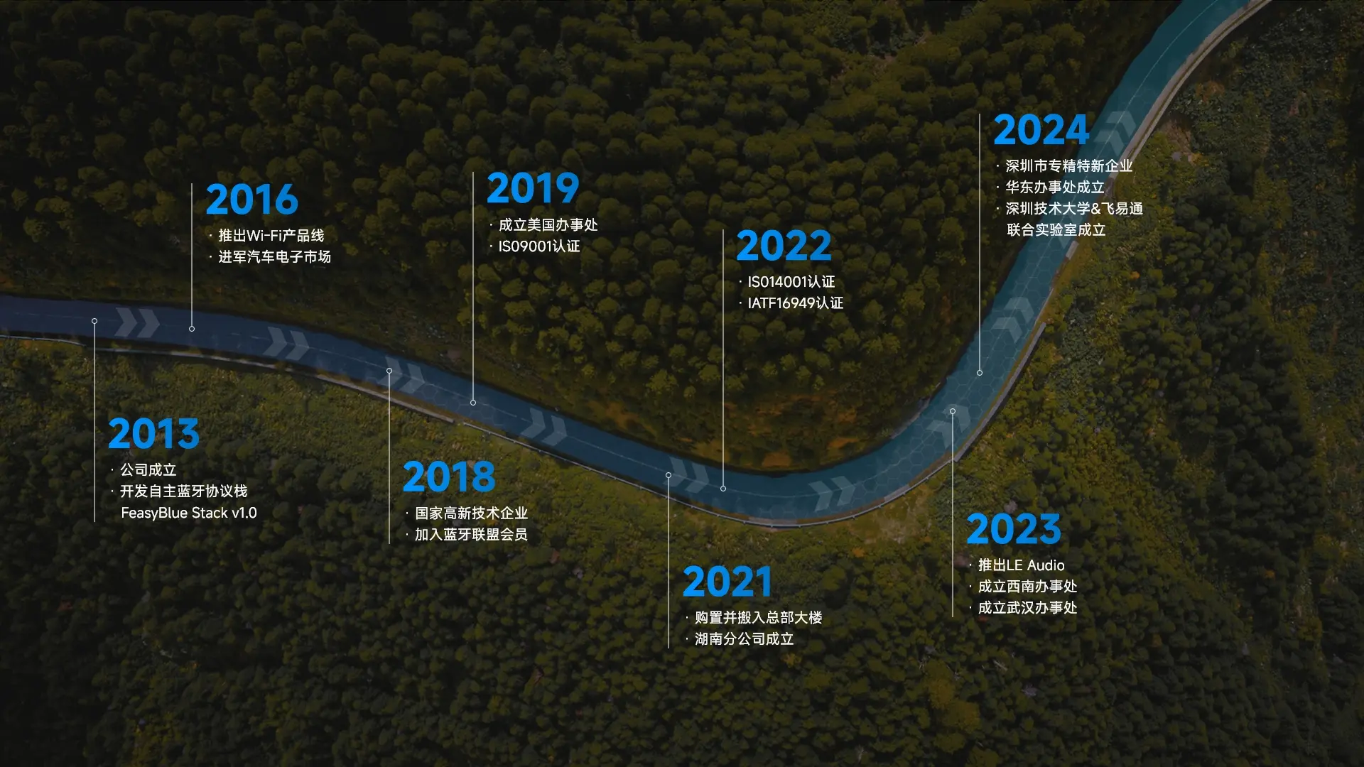 关于我们 飞易通让沟通简单自由 深圳市飞易通科技有限公司是一家专注于物联网(IoT)无线互联的高新技术企业。公司拥有100位以上的核心软硬件研发团队。经过多年的技术积累和沉淀,飞易通已拥有自主的无线协议栈及软件知识产权,在短距离无线通信和组网领域构筑了端到端的方案优势。飞易通产品涵盖蓝牙、Wi-Fi、4G等物联网无线模组,并可根据客户要求深度定制,提供一站式整体方案服务(包括软件开发,硬件设计,APP技术支持等)。目前飞易通产品主要应用于工业物联、健康医疗、汽车电子、智能家居、移动互联等领域。“让沟通简单自由!”正是这种信念,让飞易通人不断探索、持续创新,并努力为用户提供一种更加简单、自由的通讯方式! 飞易通历史里程碑一览 高端的人才和办公环境 飞易通深圳总部汇聚了研发、生产、运营、品质、市场和财务等核心部门,集结了大量的高新人才。我们为飞易通家人提供了舒适宜人的办公环境,创造了高效率和高质量的工作保障。这个总部不仅是一个聚集创新力量的地方,更是一个激发激情和激发创造力的场所。我们深知,优秀的团队和良好的工作环境是推动我们不断进步和创新的重要因素。因此,飞易通深圳总部不仅提供了现代化的办公设施和设备,还倡导着积极的企业文化和团队合作精神。我们相信,这样的环境将激发出更多的创新思维和卓越表现,为客户提供更优质的产品和服务。 先进的制造和测试平台 飞易通拥有先进的制造和测试平台,为您提供卓越的物联网无线通信产品。通过自动化产线的运用,我们极大地提高了产能,确保了可靠的交付能力。同时,我们采用先进可靠的测试设备和严格的测试标准,结合高效的射频测试和功能测试流程,以确保我们产品的质量和性能达到最高水平。飞易通的先进制造和测试平台不仅为我们的全球客户提供了卓越的产品,更为他们带来了无与伦比的物联网无线通信体验。无论您是在哪个行业,飞易通都能为您提供可靠、高品质的物联网无线通信解决方案,助您实现更大的商业成功。 富士NXT高速SMT生产线 0 条 测试和组装线 0 条 物联网无线模块产能 0 万/月 超清洁自动化生产车间 在飞易通,我们引以为傲的是我们拥有一流的自动化生产车间,采用最先进的精密贴装设备和前沿的生产技术。这些高效的生产工艺和严格的质量控制流程确保了我们产品质量的卓越表现。我们致力于提供无可挑剔的品质保障,让您放心选择飞易通的产品。无论是在外观设计还是在性能表现上,我们都精益求精,力求超越您的期望。 超智能超精益生产管理 飞易通以IMS和ERP系统的先进应用为支撑,全面实施6S管理和精益生产管理,为您提供高效的生产控制和优化的供应链管理。我们的无线模块产能超过每月1000万个,承载着丰富的制造经验和卓越的生产实力。而我们的管理团队具备着深厚的制造经验和卓越的领导才能,为飞易通的持续创新和卓越发展提供了坚实的支持。放心选择飞易通,我们将为您提供高效、可靠的产品制造。